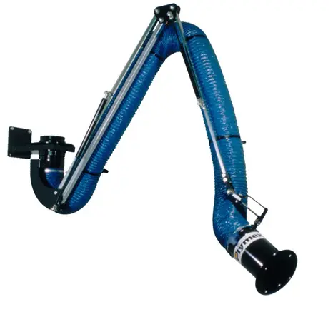 Inkl. Wandbefestigung mit zwei kugelgelagerten Horizontalarmen, Schlauch und Trichter mit Drosselklappe. Außenliegender Parallelogramm-Arm mit zwei Hydraulikdämpfern, für optimalen und ungehinderten Luftstrom.